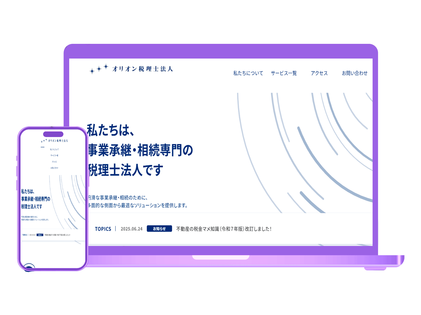 母が税理士さんにお世話になっていたことをきっかけに、税理士法人のサイトを想定して制作しました。